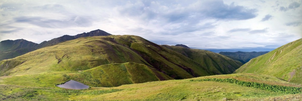 Fantastyczny dzień pełen widoków i wrażeń. Wejście na główną grań kaukaską, która w tym miejscu jest łagodna i łatwo dostępna i dalej przez przełęcz Patara Borbalo (2980 m), potem zejście do jeziorka i biwak.