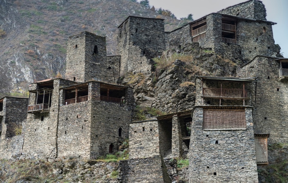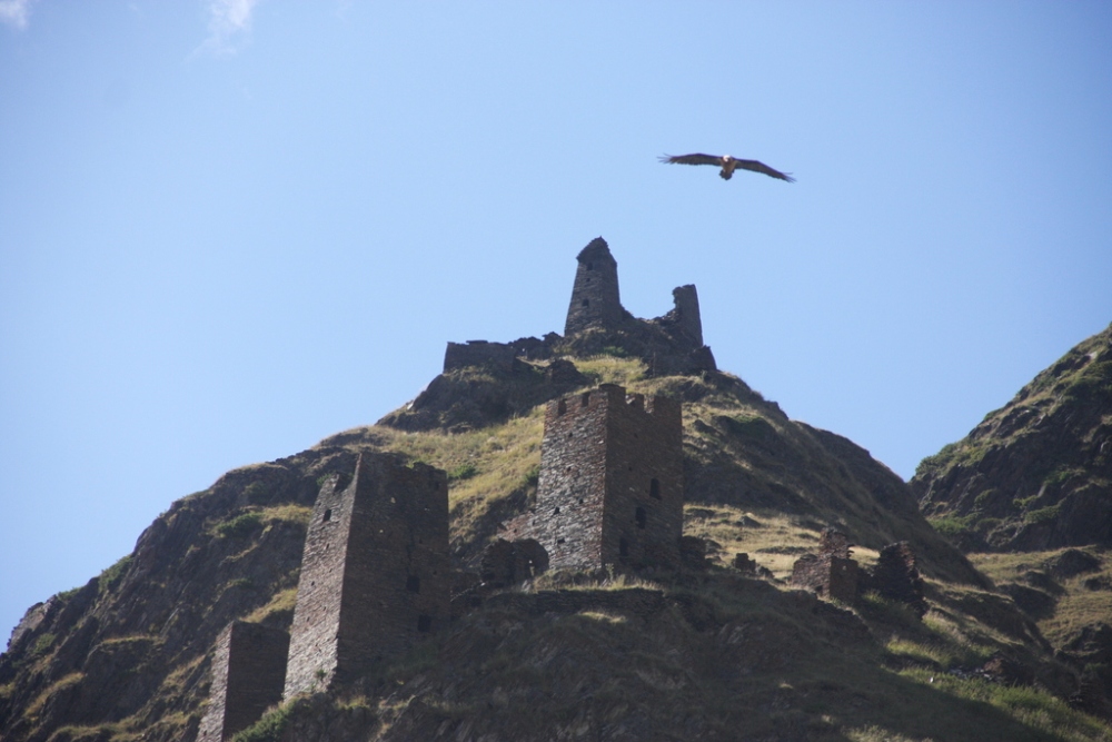 Długie zejście do Ardoti lub dalej do twierdzy Muco (1650 m) – “kaukaskiego Macchu Picchu”.