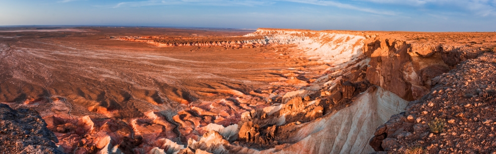 Nocny przejazd pociągiem nad Morze Kaspijskie do Turkmenbaszy. Po śniadaniu przejazd do świętego miejsca Gozli Ata. Po obiedzie przejazd do kanionu Yangykala i podziwianie widoków. Wyrażenie „yangi kala” tłumaczy się jako „ogniste twierdze”. Tu zrobimy sobie „kultowe” zdjęcia na Paszczy Aligatora. Powrót do Turkmenbaszy.